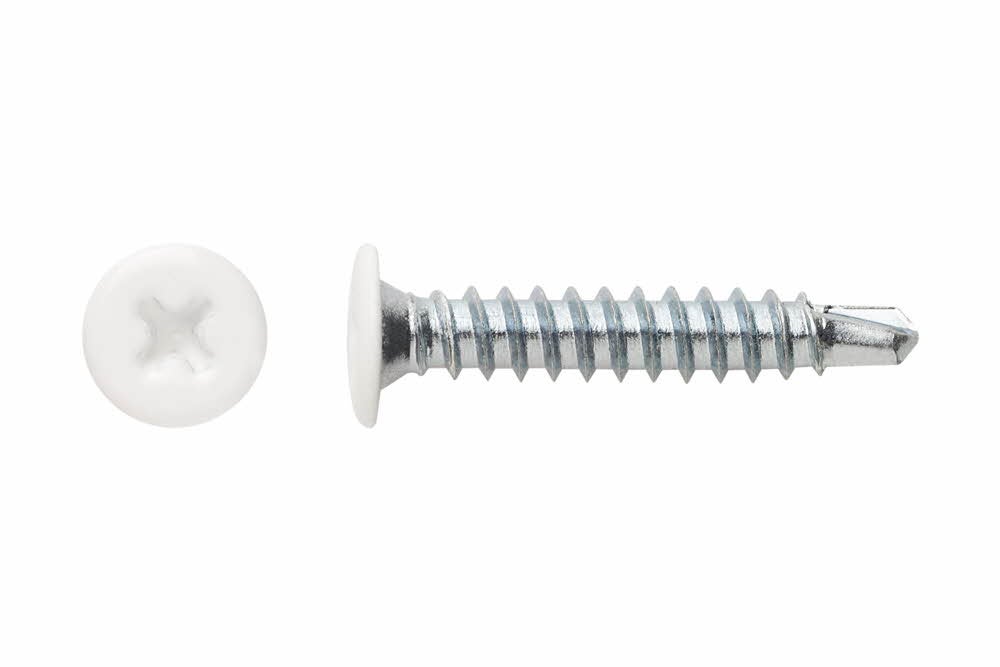 Vis auto-perceuses - filetées à tôle et PVC - tête extra plate et empreinte PH Tête blanche - Empreinte PH 4,2 x 23 - Boite de 500