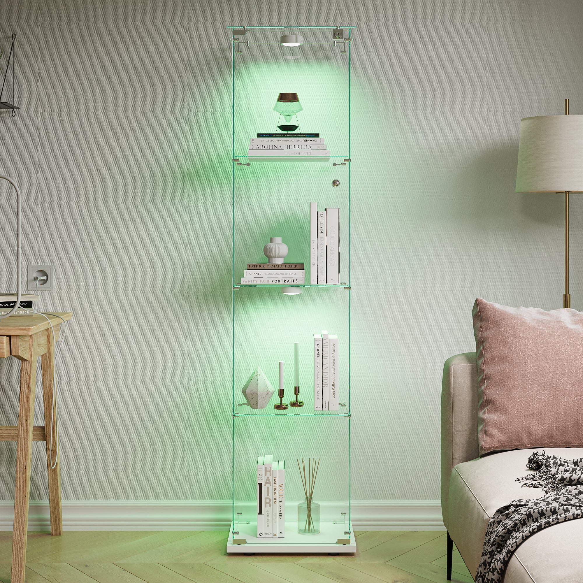 Vitrine en verre - 1 portes - 4 niveaux - Lumière LED - plaque de fond - 39.8x35x163cm - blanc