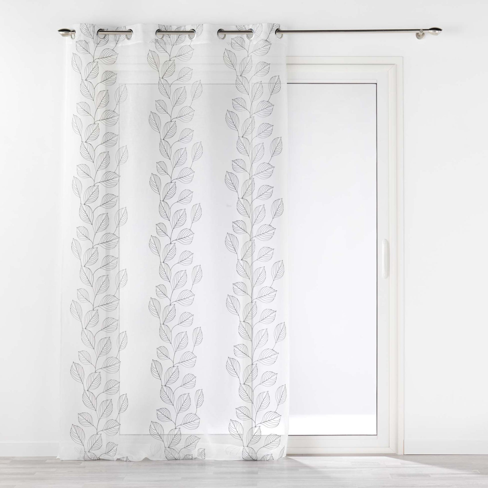 Optez pour un style nature avec ce voilage brodé de feuilles blanches ou grises qui décoreraavec élégance vos ouvertures. Celui-ci est réalisé dans un voile sablé qui filtrera la lumière tout en vous preservant des regards indiscrets.Ses oeillets ronds et argentés permettent de les glisser facilement sur la plupart des tringles à rideaux.Mariez-les à des accessoires décos comme un ficus artificiel et créez une ambiance chaleureuse et raffinée.Vous pouvez coordonner des embouts de tringle design à ces vitrages afin de parfaire votre décoration.D'autres articles assortis sont disponibles sur notre site.Lavage en machine à 30°C.Vendu à l'unité . Prêt à poser.
