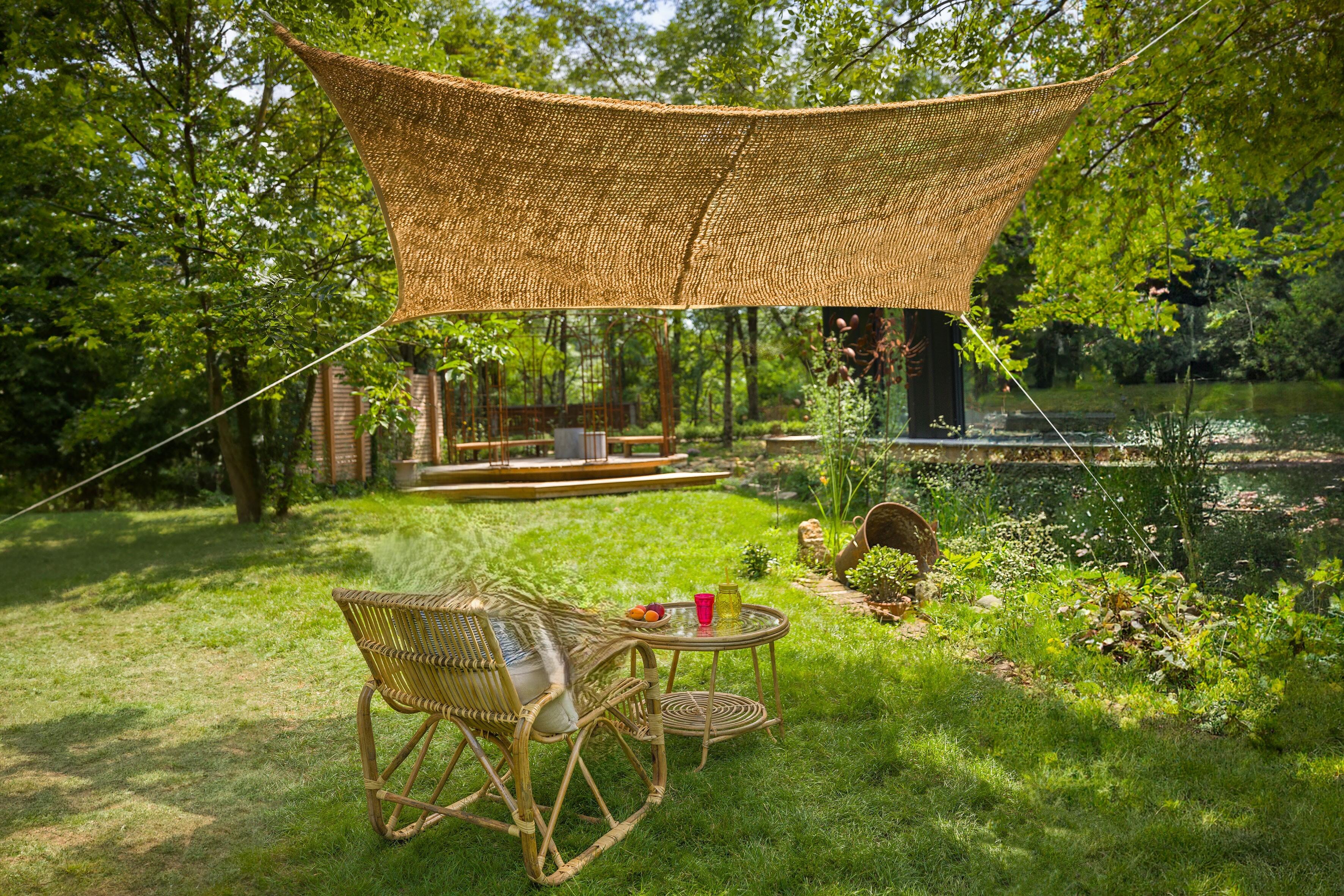 Le tissage de l’ombrière tamise les rayons du soleil. Résistant aux intempéries, imputrescible et très robuste, il est également facile à entretenir. Il laisse passer l'air, procurant ainsi une agréable sensation de fraîcheur.