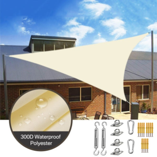 Voile d'ombrage triangulaire de couleur claire imperméable, voile de jardin 3x4x5 m, auvent de protection solaire anti-UV avec accessoires