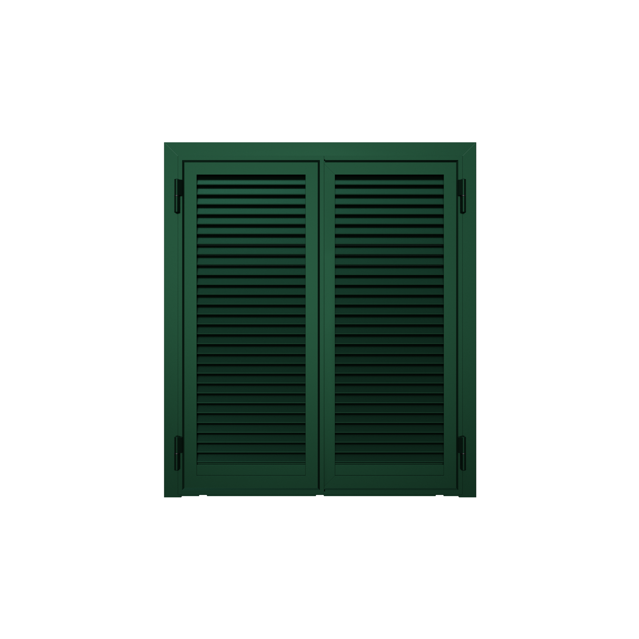 Volet battant blindé galvanisé à 2 panneaux mod. Cadre Roma 120x155 couleur vert type A. Ouverture à gauche volets blindés fenêtre