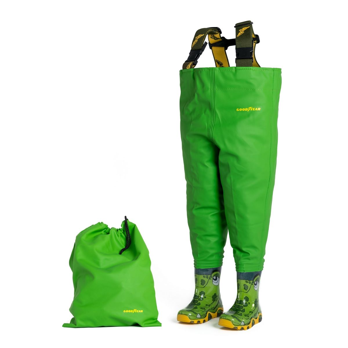 Le Waders enfants Vert pomme pour jouer sous la pluie ou en bord de mer de la marque GoodYear vous permettra de protéger vos enfants des aléas du temps. Il est renforcé en éléments réfléchissants résistants en pvc et étanche.