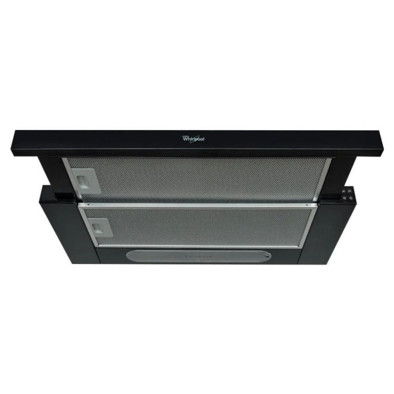 Whirlpool Hotte téléscopique encastrable, 3 vitesses, filtre à charbon inclus, filtres aluminium lavable en machine, noir (AKR7491NB)