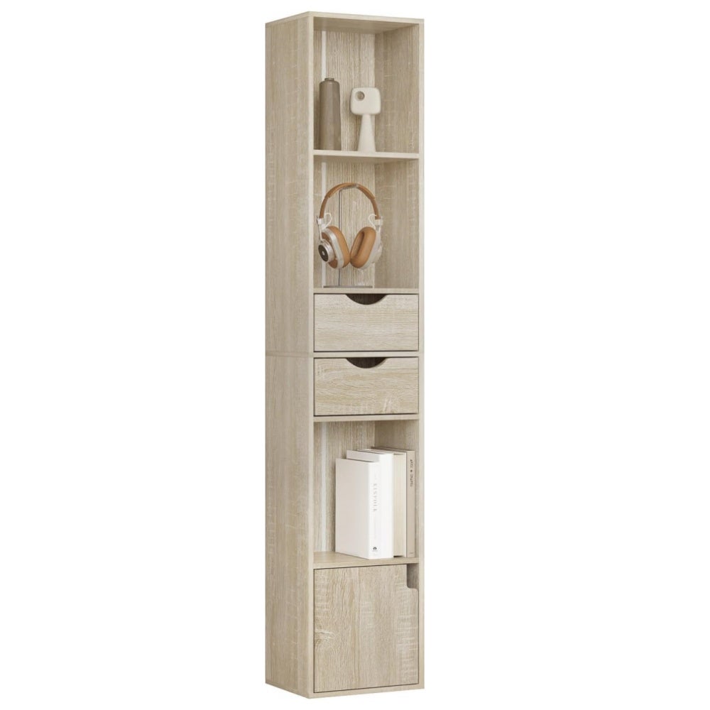 WOLTU Bibliothèque Étagère.Colonne avec 3 Compartiments Ouverts.2 Tiroirs et 1 Casier.30x24x158cm.Chêne Clair