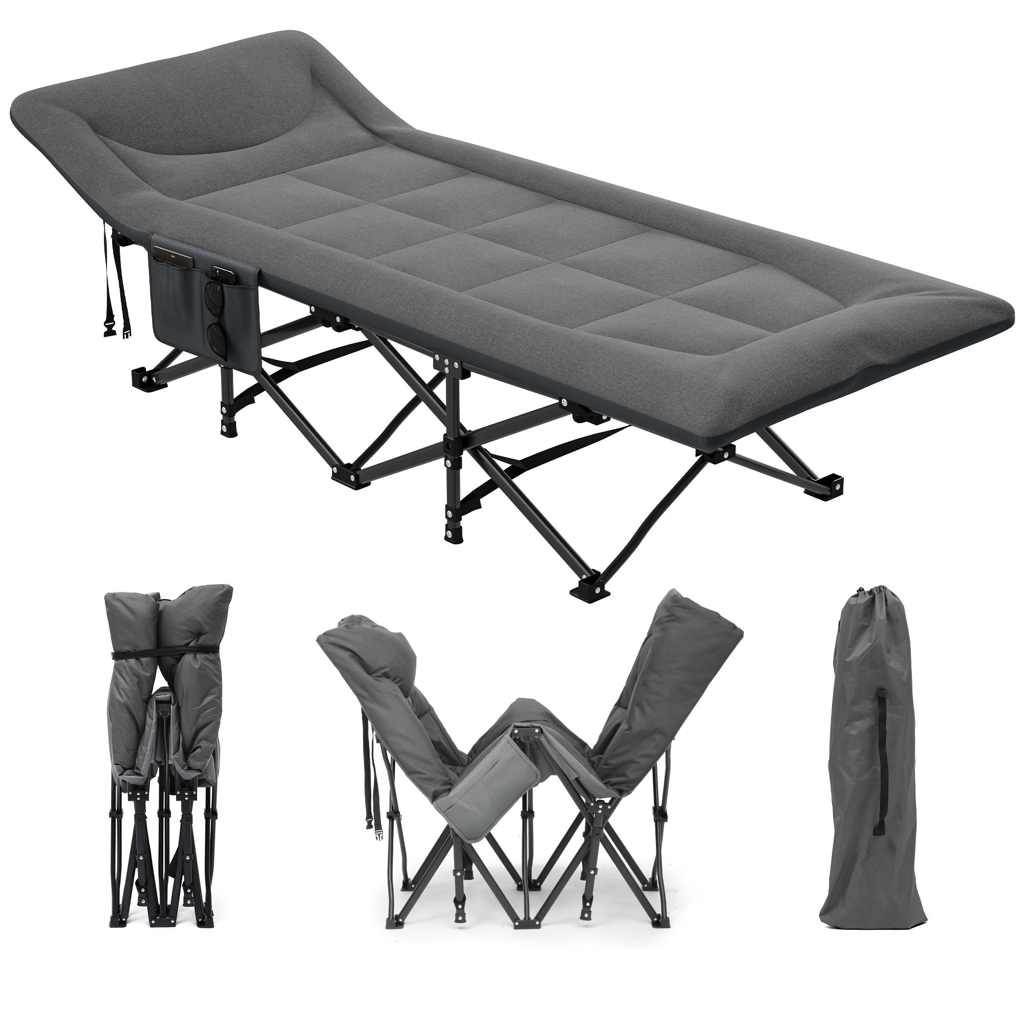 YITAHOME Lit de Camping - Pliant pour Adultes - Capacité de 250 kg - Gris - avec Matelas