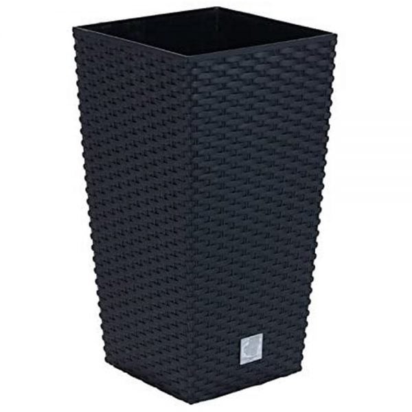 Pot de jardin avec insert pour l'irrigation. La jardinière haute Rato Square, dont la texture imite fidèlement la tresse de rotin naturel, dans une forme classique et pure, vous permet de créer de beaux intérieurs uniques et d'organiser l'espace autour de la maison sans restrictions, en conciliant différents styles et goûts. Sa fonctionnalité s'exprime également dans le confort d'utilisation, quelle que soit l'aura. Fabriqué en plastique de haute qualité – polypropylène. Convient pour une utilisation intérieure et extérieure. Livré avec insert / doublure intérieure. Dimensions : 26,5 x 26,5 x 50 cm. Capacité : 11 L. Capacité avec insert : 26,6 L.