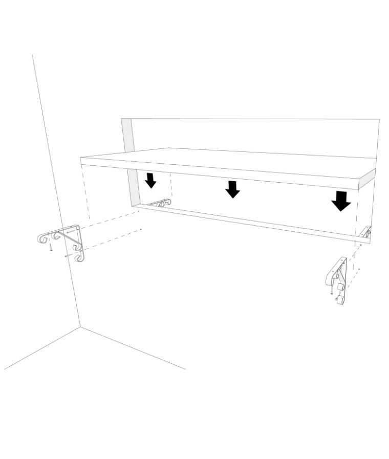 - Fixez le plan de travail à cheval sur l'ouverture avec 2 équerres de chaque côté de la cloison.